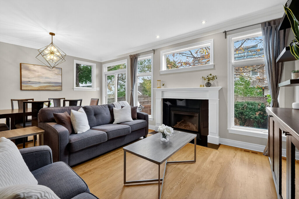 Designed for those who love to entertain, relax at home with family, or simply lock up and go, the open-concept main floor features a bright and spacious living area with walls of windows, a gas fireplace, and direct access to the back deck.