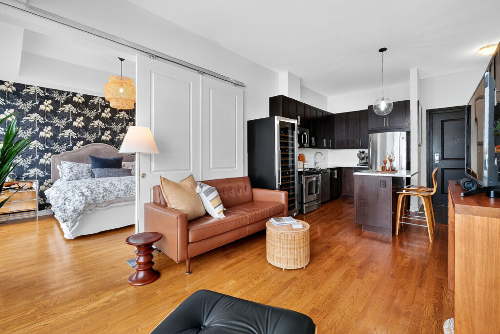 - Sliding barn doors maximize light to all rooms and provide a sense of space