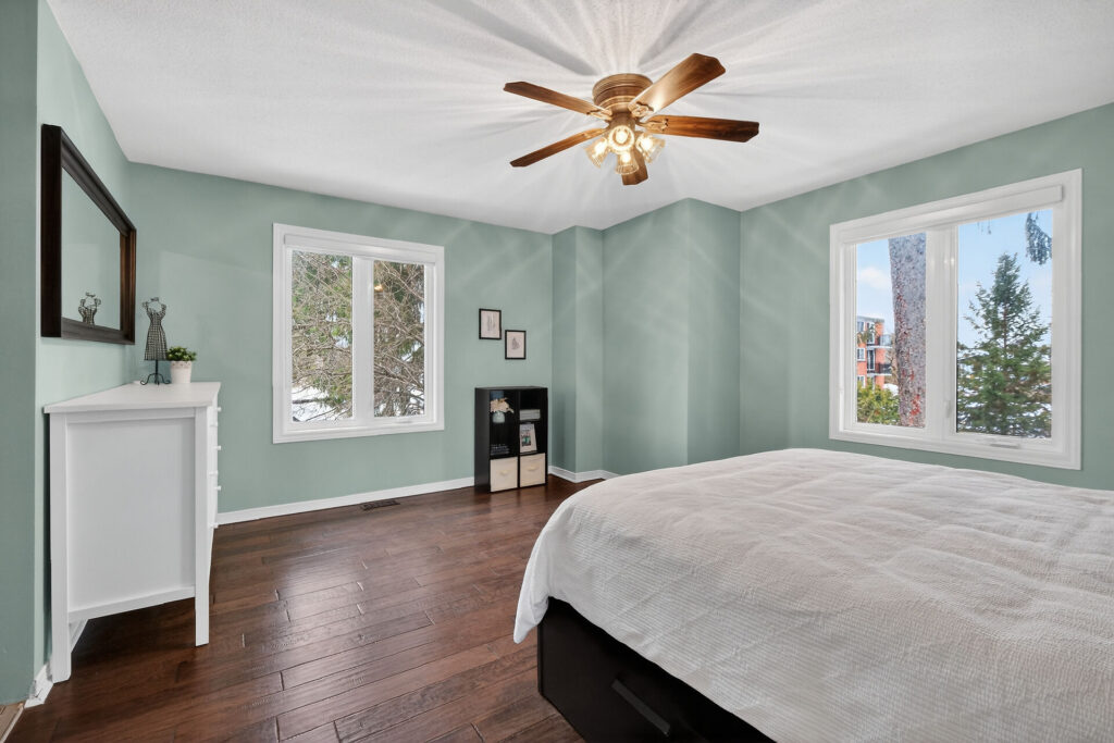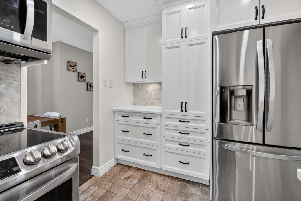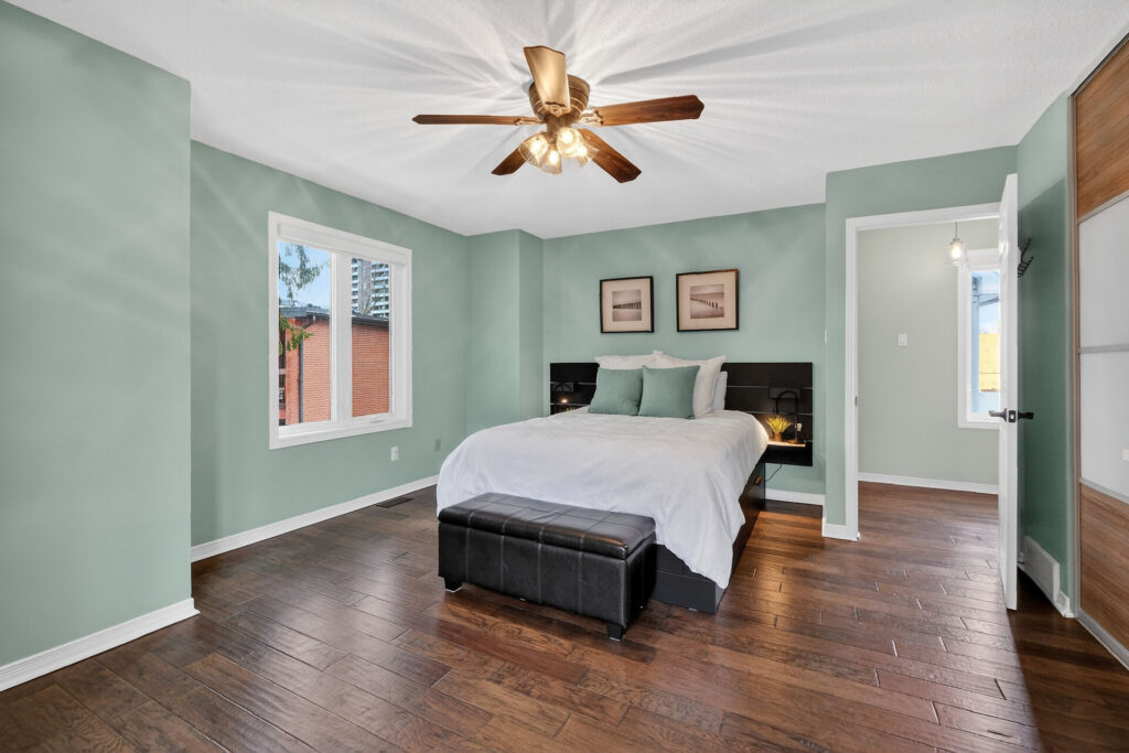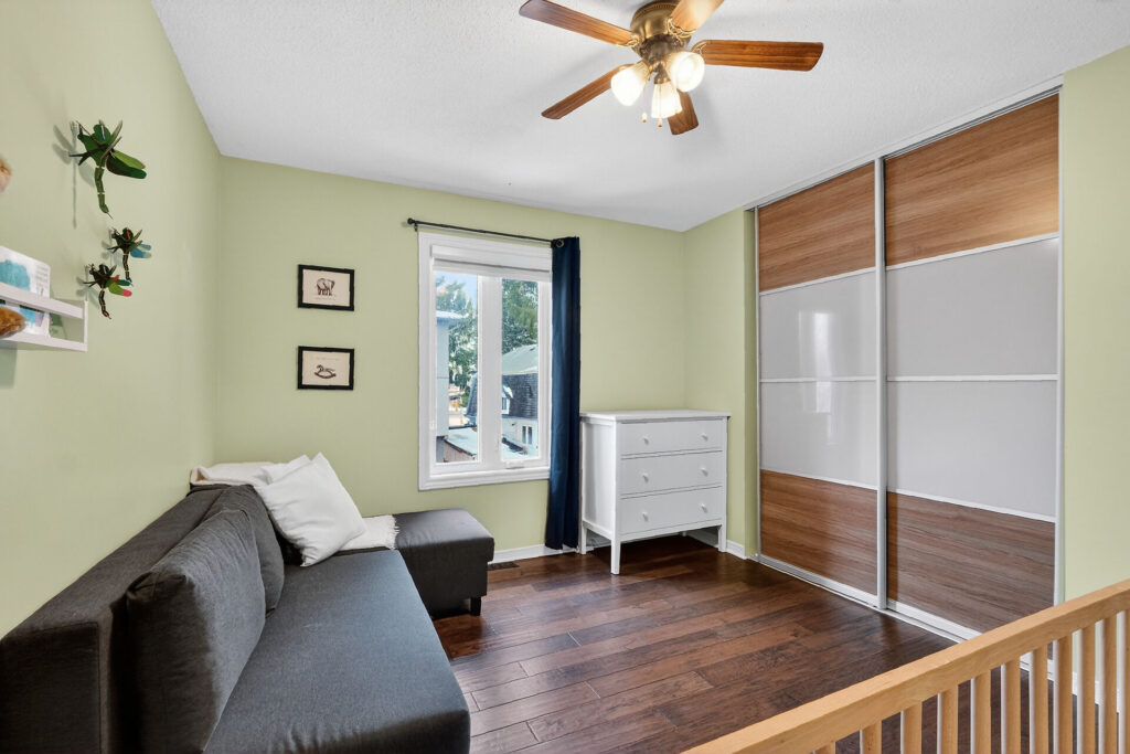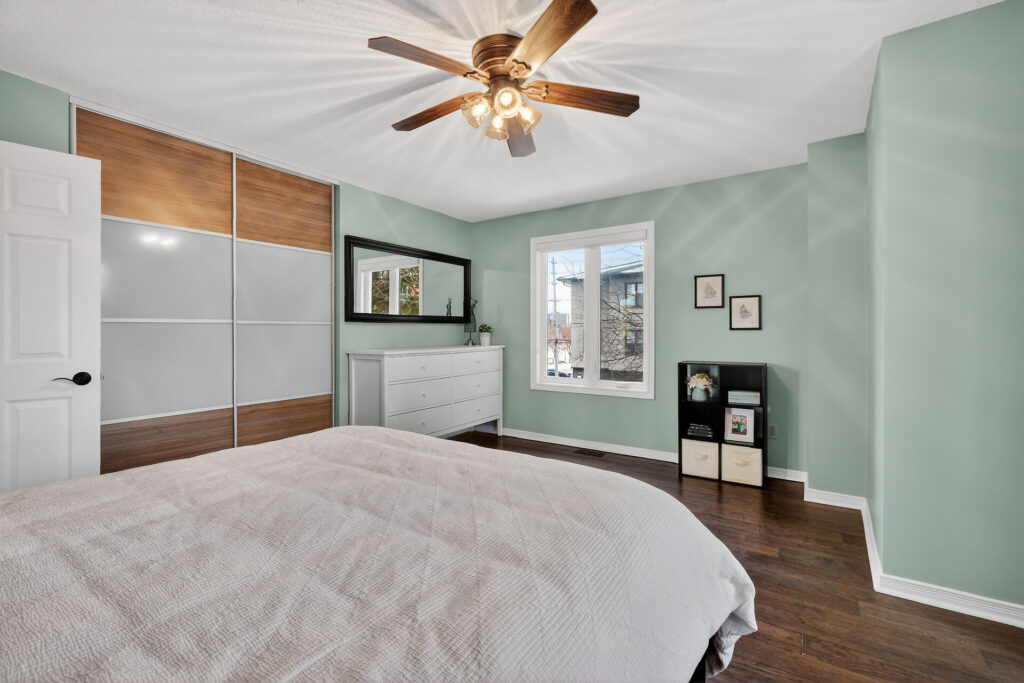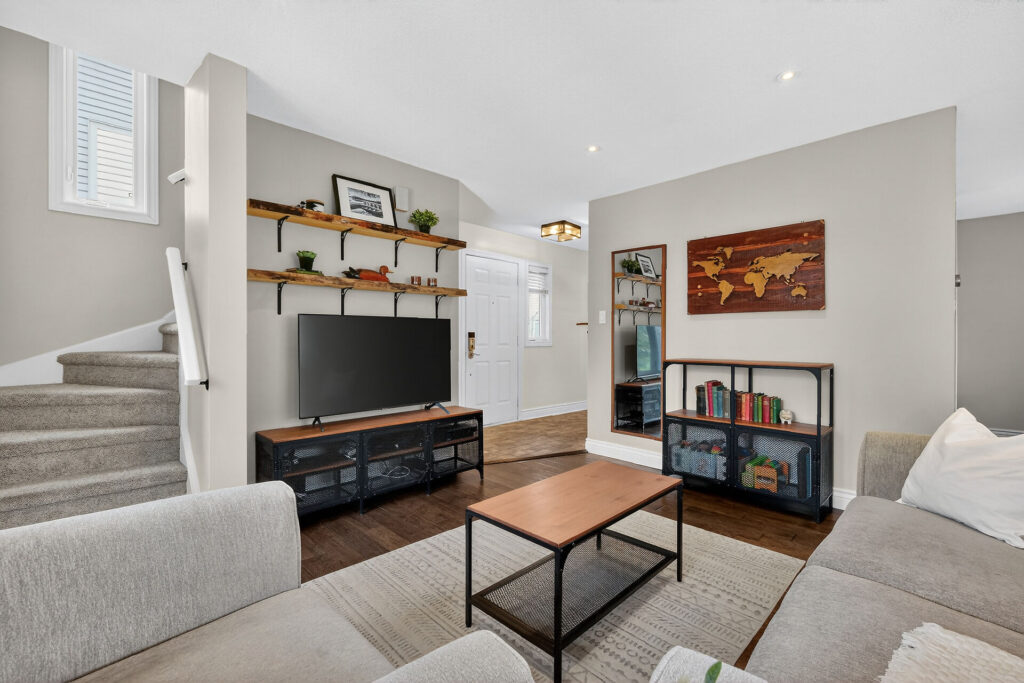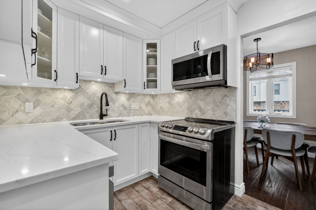 The renovated chef’s kitchen showcases quartz countertops, stainless steel appliances, and generous prep and storage space.  Upstairs are two spacious bedrooms and a renovated 4-piece bathroom.